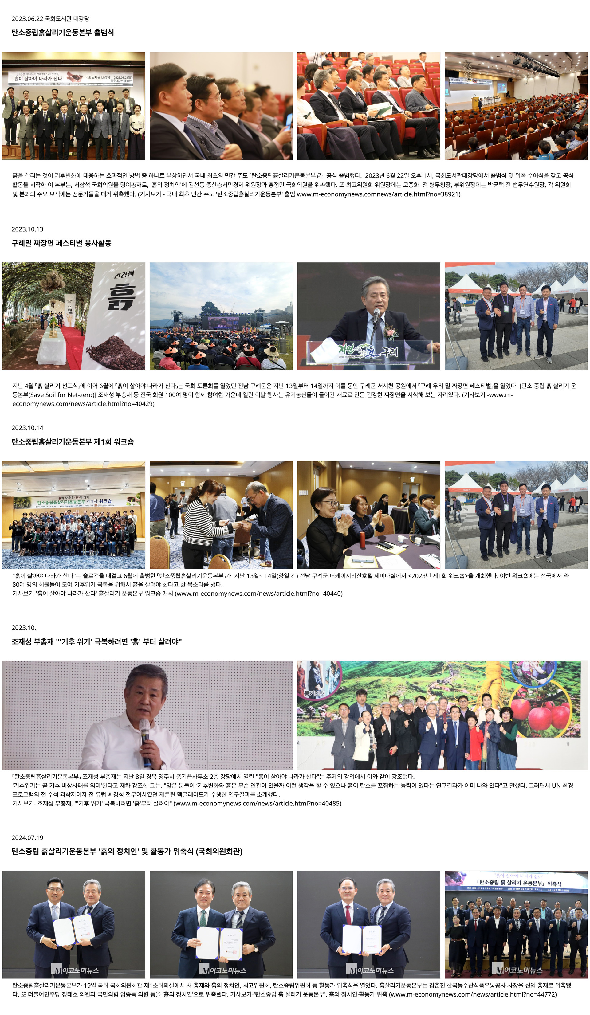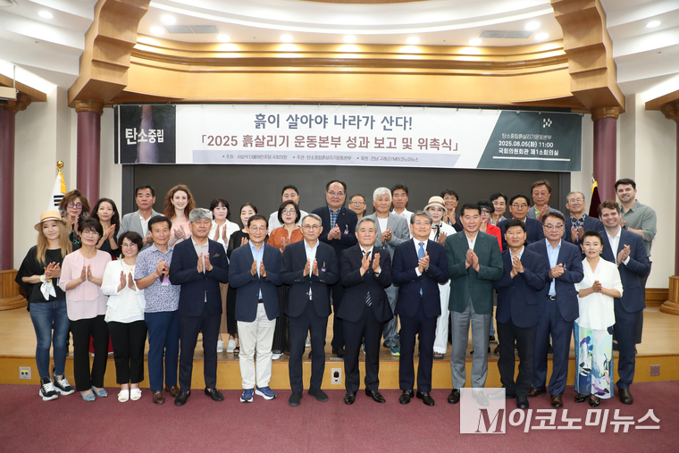 ‘흙이 살아야 나라가 산다’는 슬로건을 내걸고 출범한 국내 최초 민간 단체인 '탄소중립 흙살리기운동본부(총재 조재성)'가 5일 국회 의원회관 제1 소회의실에서 ‘흙살리기운동본부 성과 보고 및 위촉식’을 가졌다. 기사원본보기 https://www.m-economynews.com/news/article.html?no=58148